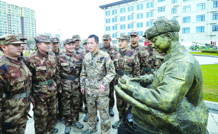 日前,淮阴区人武部干事为应征入伍青年宣讲英雄模范事迹。