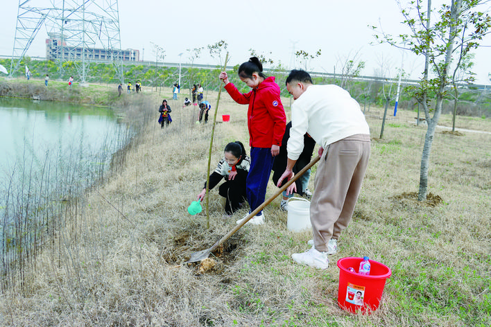 日前,盱眙县马坝中心小学组织该校40余名师生及学生家长,深入田间地头开展义务植树活动。