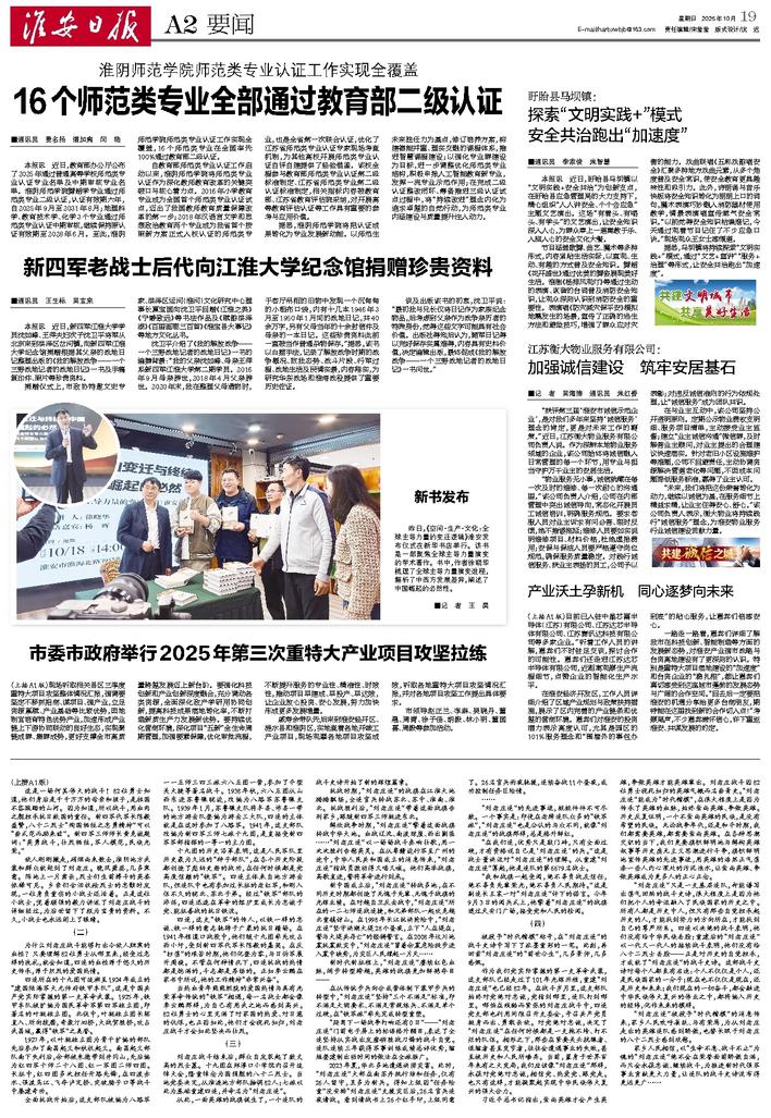 本报讯 近日,教育部办公厅公布了2025年通过普通高等学校师范类专业认证专业名单及中期审核专业名单。淮阴师范学院舞蹈学专业通过师范类专业二级认证,认证有效期六年,自2025年9月至2031年8月;地理科学、教育技术学、化学3个专业通过师范类专业认证中期审核,继续保持原认证有效期至2028年6月。至此,淮阴师范学院师范类专业认证工作实现全覆盖,16个师范类专业在全国率先100%通过教育部二级认证。