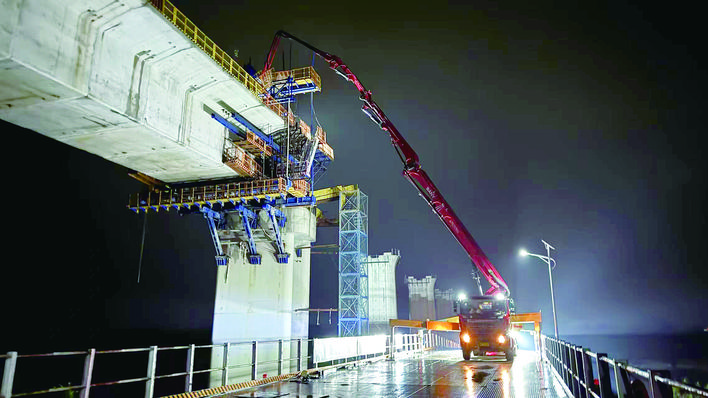 本报讯 日前,随着最后一方混凝土浇筑完成,宁淮城际铁路洪泽至金湖双线特大桥跨淮河入江水道段连续梁实现整体合龙,标志着项目重难点工程建设取得突破性进展,为宁淮城际铁路按期通车奠定坚实基础。
