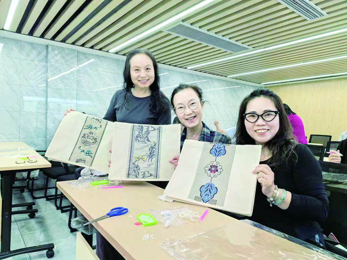 近日,清江浦区长东街道三门社区新时代文明实践站组织开展手工宋锦帆布包制作活动,30名居民、党员及新业态新就业群体齐聚一堂,在一针一线中感受非遗魅力。■通讯员 明 园 戴 静 颖 颖
