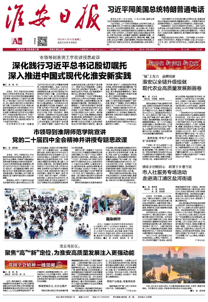 本报讯 昨日,市委书记史志军到淮阴工学院讲授思政课,贯彻落实习近平总书记对学校思政课建设重要指示精神,宣讲党的二十届四中全会精神,以“深化践行习近平总书记殷切嘱托,深入推进中国式现代化淮安新实践”为题,与老师学生们交流,希望大家把思政课建设作为党领导教育工作的重中之重来抓,依托淮安丰富的红色文化资源,讲清讲透习近平总书记对青年学子、对淮安发展的殷切关怀,引领广大学生自觉听党话、跟党走,守紧守牢意识形态阵地,努力培养更多拥有“四个自信”的时代新人。