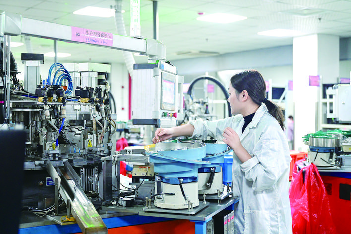 近年来,清江浦区聚焦生物医药、现代食品、锂电能源“三大百亿级产业”集聚发展,加快项目建设步伐,坚定不移推进产业强区。图为近日,位于清江浦区的江苏橙柳新能源科技有限公司车间内,工人专注于生产新能源产品。
