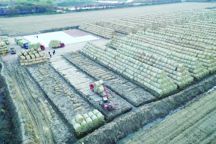 昨日,在洪泽区高良涧街道,人机协作将水稻田间的打捆秸秆集中运至临时存放点,为后续资源化利用做好准备,以期实现经济效益与生态效益的“双赢”。