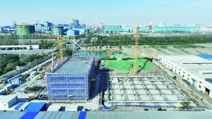 近年来,清江浦区聚焦原料药生产、医疗器械创新等赛道,加快打造200亿级生物医药及大健康产业集群。图为天圆医用产品智能生产基地项目建设现场。