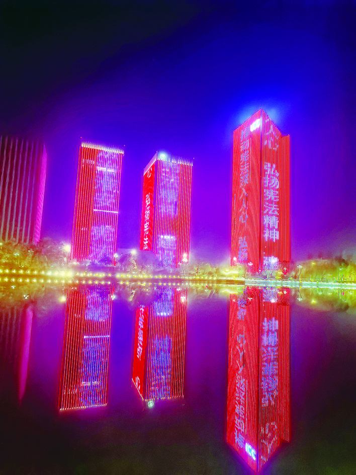 夜晚,开控集团汇金云谷建筑群化身巨型法治宣传栏,一场精心策划的“宪法主题灯光秀”震撼上演。“学习贯彻习近平法治思想 推动宪法深入人心”“宪法是最高的行为准则 法治是最好的营商环境”等标语在楼宇幕墙上流光溢彩、交相辉映,吸引无数市民拍照打卡,开启了一场全城瞩目的沉浸式宪法教育。