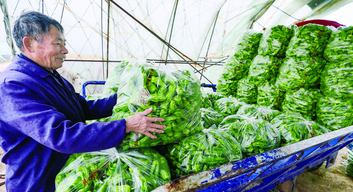 近年来,淮阴区聚焦“特色农业富民”目标,引导农民规模化发展特色蔬菜种植,有效拓宽农民增收渠道。图为昨日,该区一蔬菜种植基地内,菜农将新鲜的辣椒打包装车、供应市场。