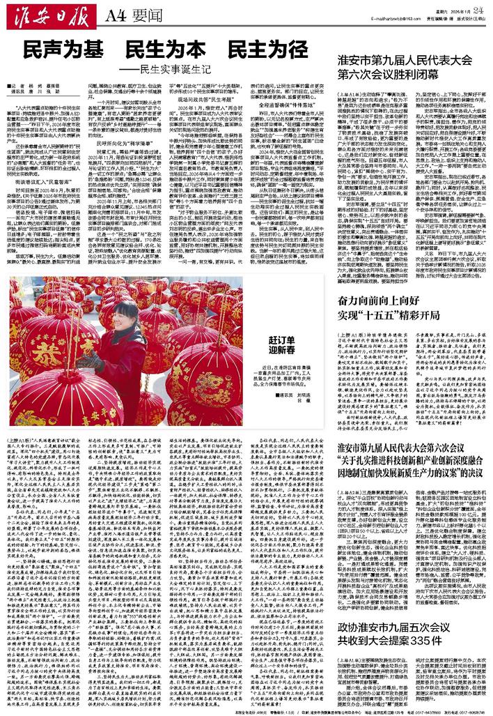 淮安市第九届人民代表大会第六次会议“关于扎实推进科技创新和产业创新深度融合因地制宜加快发展新质生产力的议案”的决议