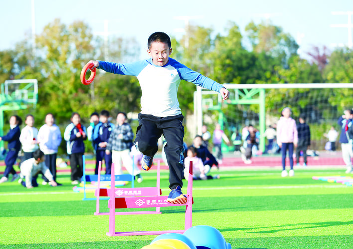 近日,我市多所中小学开展秋季趣味运动会,让学生们感受运动的快乐。图为小学生在操场上运动。■记者 赵启瑞 通讯员 柏苏瑞 张海艳